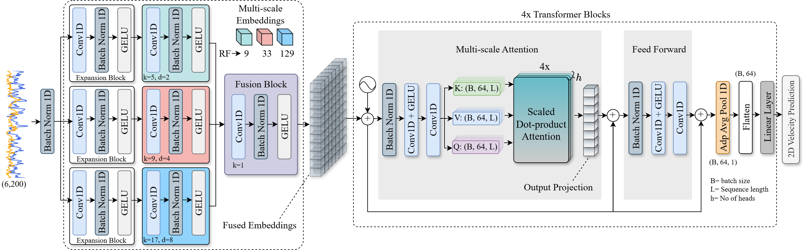 Designing a hardware-aware multiscale transformer network optimized for TinyML applications, specifically targeting inertial motion tracking on resource-constrained devices. This project focuses on maintaining high accuracy while drastically reducing model size and computational requirements.